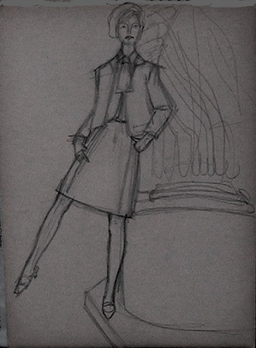 Fashion plate from magazine. Pencil. Modell divatlapból másolva. Ceruzarajz.