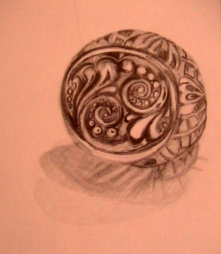 Avon glass jar on its side; demonstration of effects of light. Arckrém tégely (üveg), oldalára fordítva; fény és árnyék.