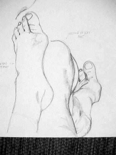 Left foot, from above, (foreshortening). Pencil. Bal comb és láb, fölülről. Ceruza.